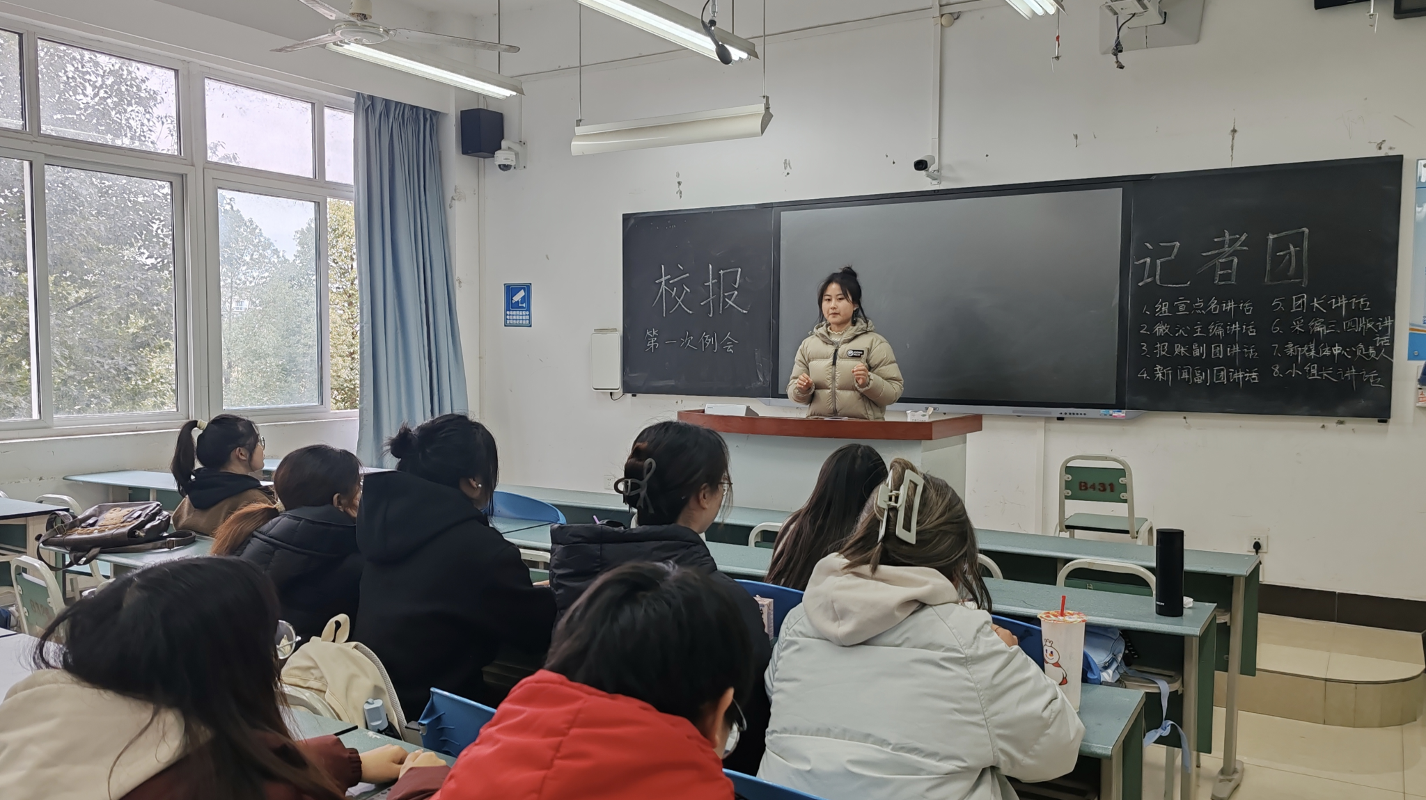 记者团团长龙欣从“夯实基础”和“创新突破”两方面对新学期工作进行全面规划。她指出,本学期将以提升校园新闻传播力为核心,重点打造“人物通讯”“校园热点”专题栏目。同时优化采编流程,强化选题策划能力,以“提前策划、深度挖掘、多平台联动”为原则,展现校园活力与人文关怀。